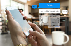 Chat bot and future marketing concept . Customer hand holding tablet for reorder coffee and popup out smart phone screen with automatic chatbot message screen , coffee shop background by Nicole Parmar on August 9, 2018 with No Comments